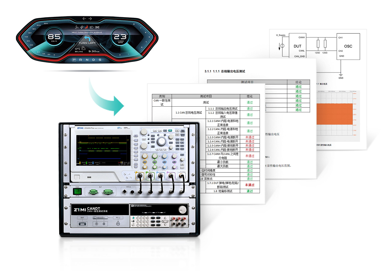 通過將汽車或單節點零部件接入CAN一致性測試系統,可自動化完成CAN總線物理層、鏈路層等自動化測試,覆蓋主流主機廠標準要求,保障整車CAN總線安全穩定。