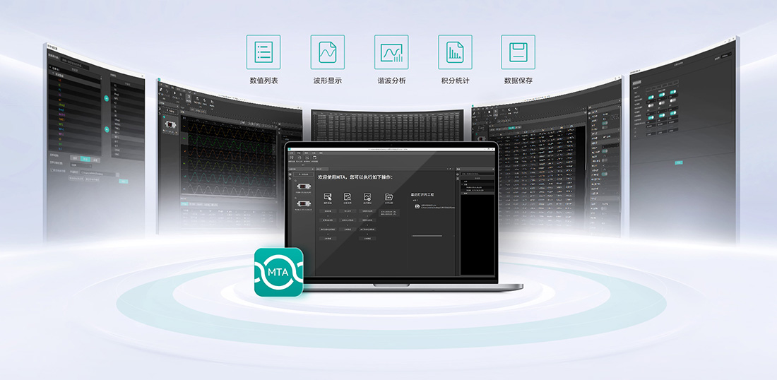 MTA數據分析軟件是致遠儀器全新開發的平臺化應用軟件,不僅可以實現對PV300功率計的遠程控制,也可實現對功率計數據的實時顯示、保存,采集顯示電壓、電流波形圖,生成各次諧波數據、諧波柱狀圖、諧波趨勢圖,還可擴展支持IEC62301國際測試標準,實現待機功耗的自動化測試。MTA數據分析軟件還可支持我司其他儀器的遠程控制和數據分析。